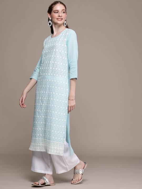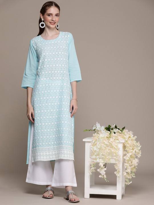 women ethnic Floral Embroidered Regular Pure Cotton Kurta with Palazzo indian pakistani salwaar kameez suit