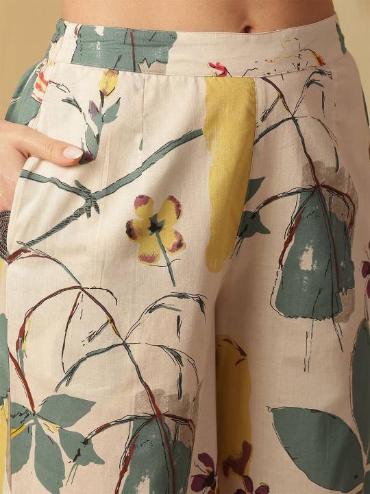 women ethnic Floral printed V-Neck Pure Cotton Kurta With Palazzos indian pakistani salwaar kameez suit