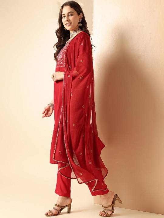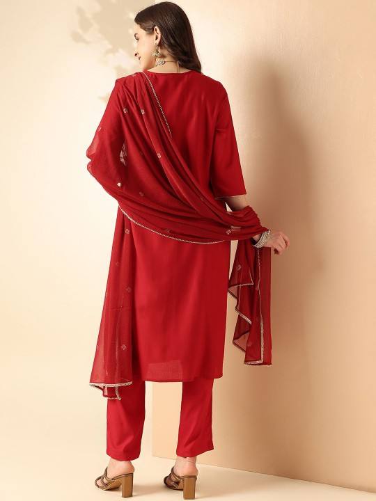 women ethnic Motifs Embroidered Sequined Straight viscose rayon Kurta With Trousers & Dupatta indian pakistan salwar kameez