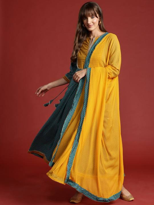 women ethnic Motifs Print Pure Cotton Kurta with Trousers & Dupatta indian pakistani suit