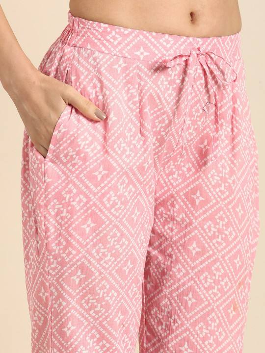 women ethnic Motifs Printed Pure Cotton Lace Insert Kurta with Trousers indian pakistani salwaar kameez suit