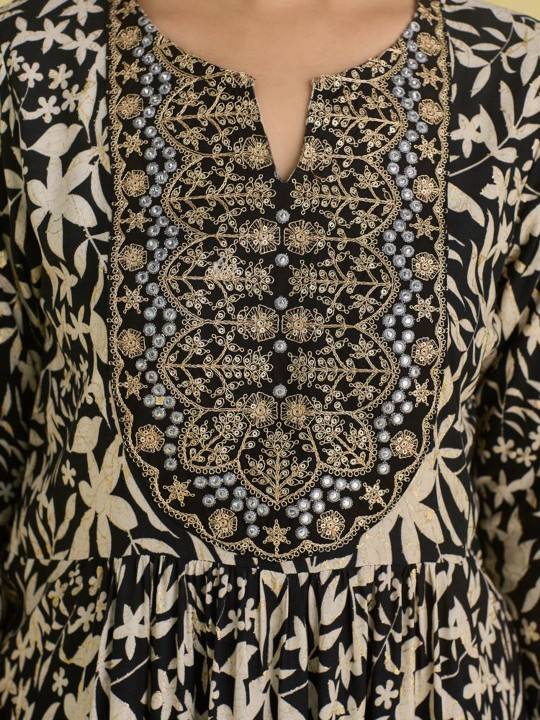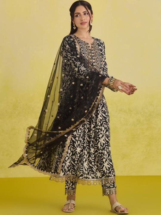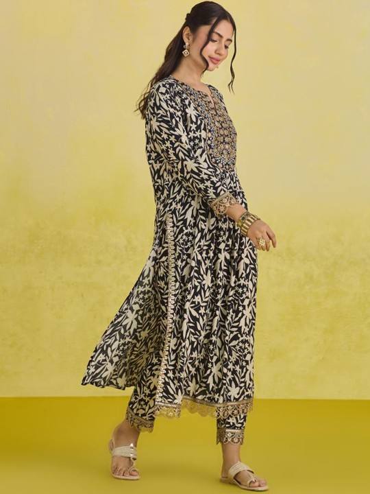 women ethnic Motifs Printed Regular Thread Work viscose rayon Kurta With Trousers & Dupatta indian pakistan salwar kameez