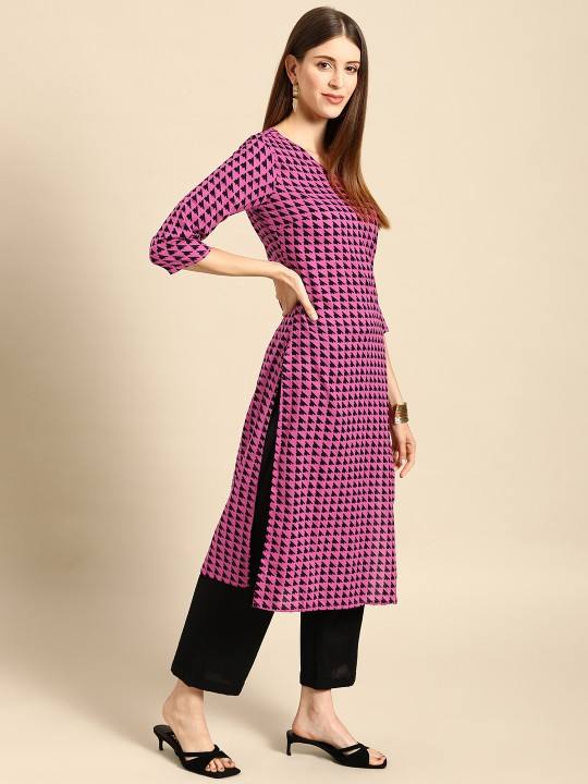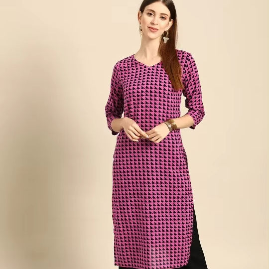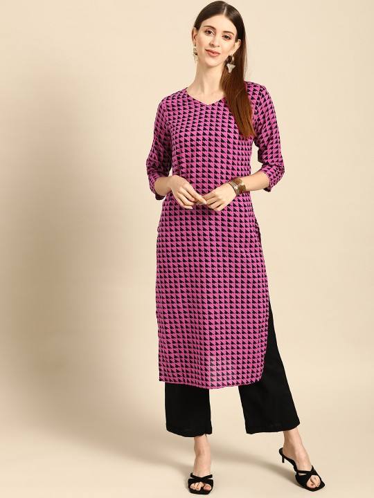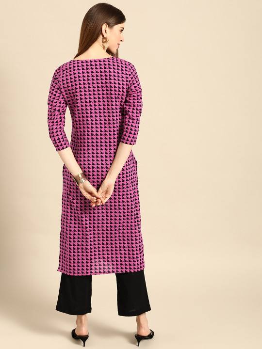 women ethnic Purple & Black Geometric Print Pure Cotton Kurta indian pakistani kameez
