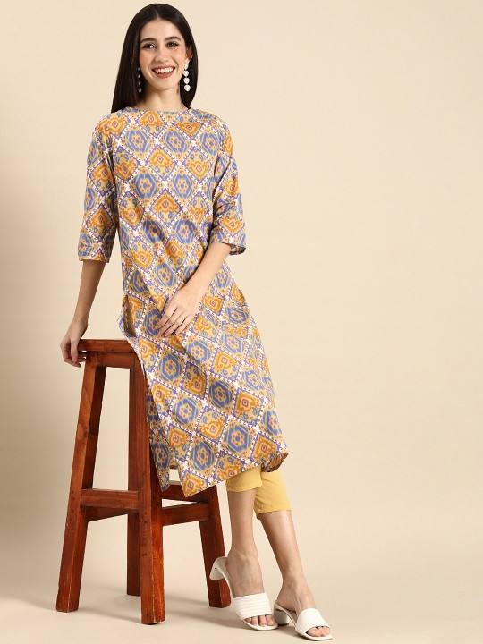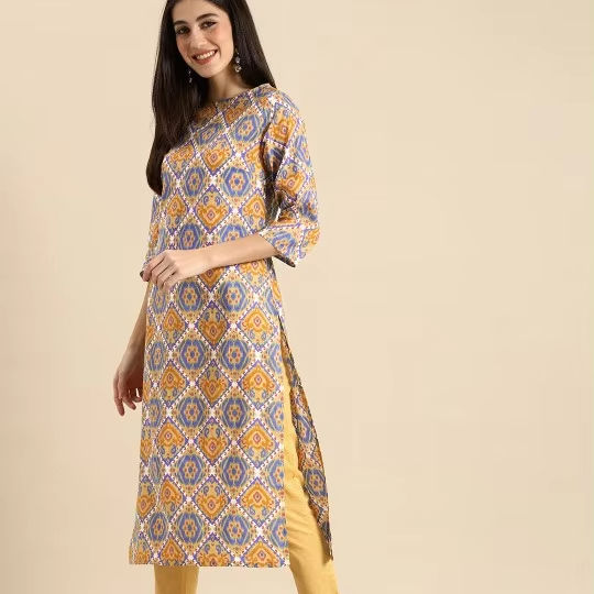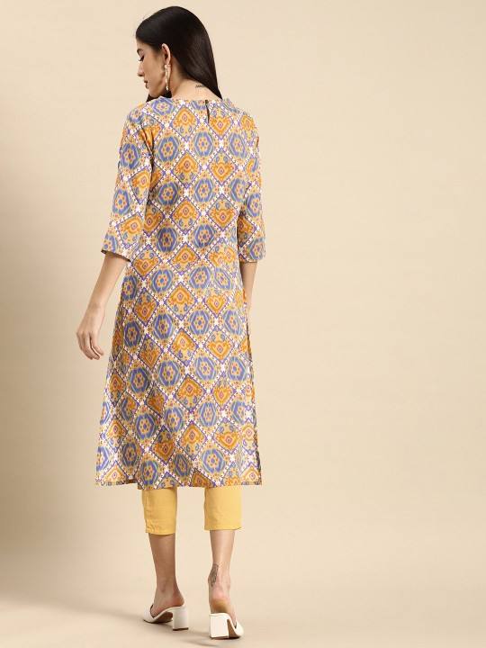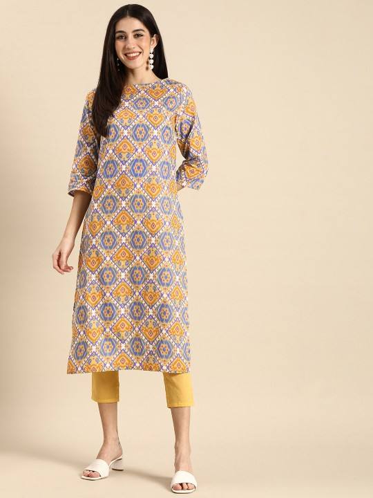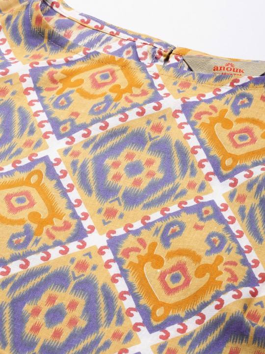 women ethnic Yellow Ethnic Motifs Printed Pure Cotton Kurta with Trousers indian pakistani salwaar kameez suit