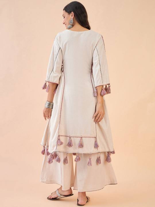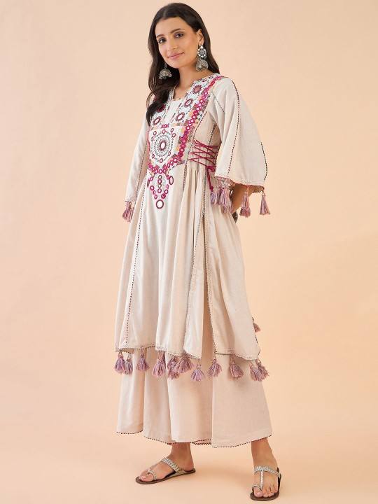 women ethnic boho Motif Embroidered Regular Mirror Work Pure Cotton Kurta with Palazzos indian pakistani salwaar kameez suit