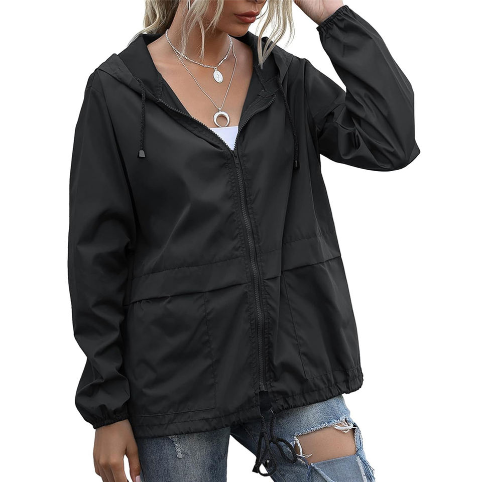 women lightweight hooded windbreaker casual zip up jacket waterproof outerwear drawstring waist stylish raincoat for travel