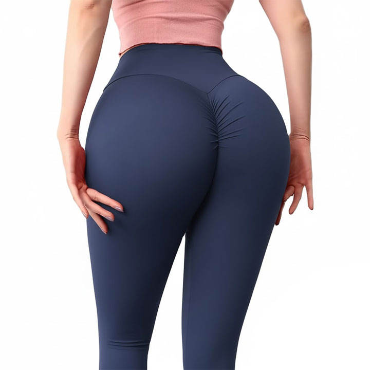 women plus size pink scrunch leggings with custom logo and fabric made up of polyester/spandex