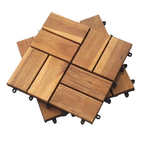 Acacia Wood DIY Decking Tiles 300*300mm Waterproof Outdoor-Use Exterior Home Garden Traditional Smooth Back Coffee Color 18mm