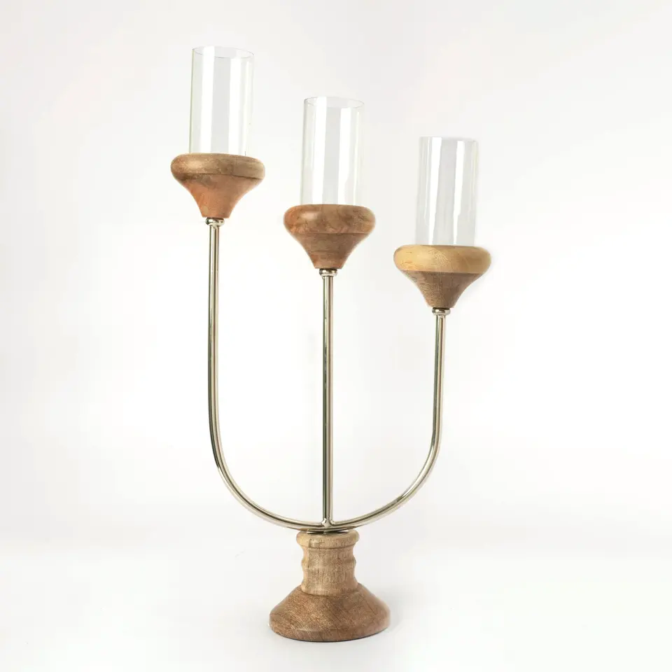 wood and metal Candle Stand round shape decorative sculpture Candlesticks Holders Glass Candle for Home Decoration