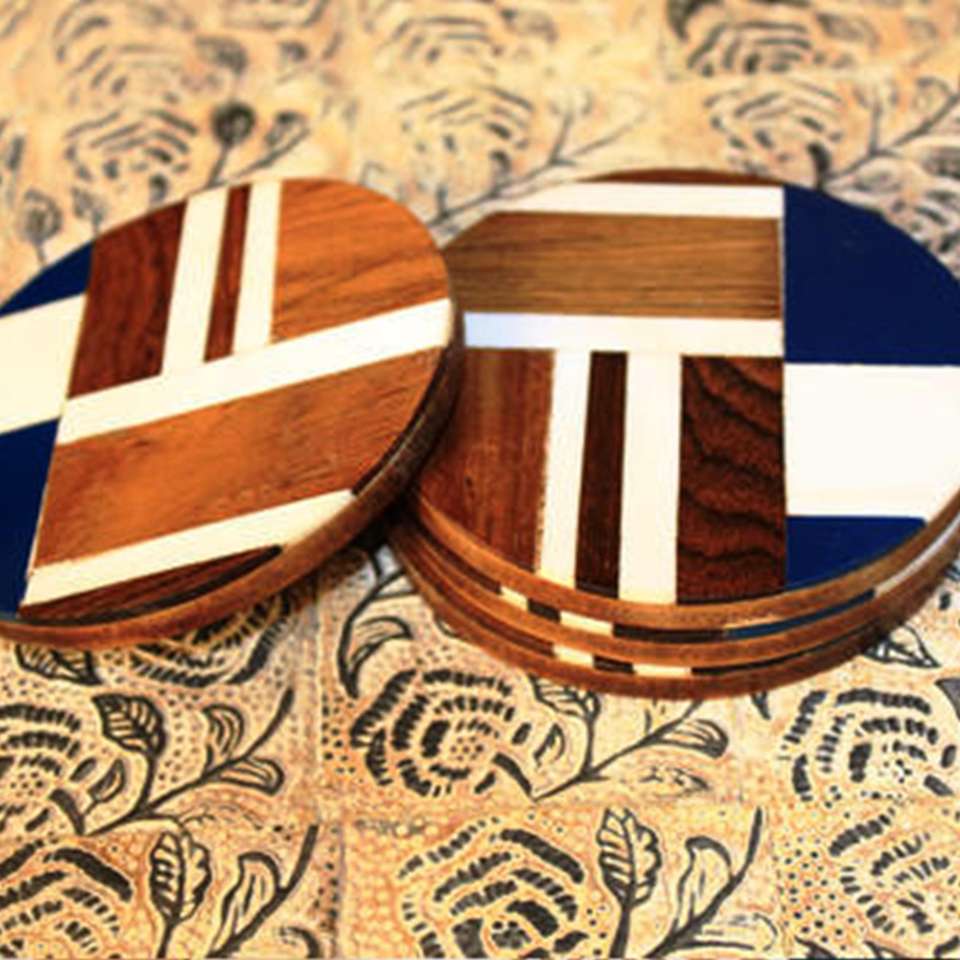 Product name:Bone And Brass Inlay Wood Coaster