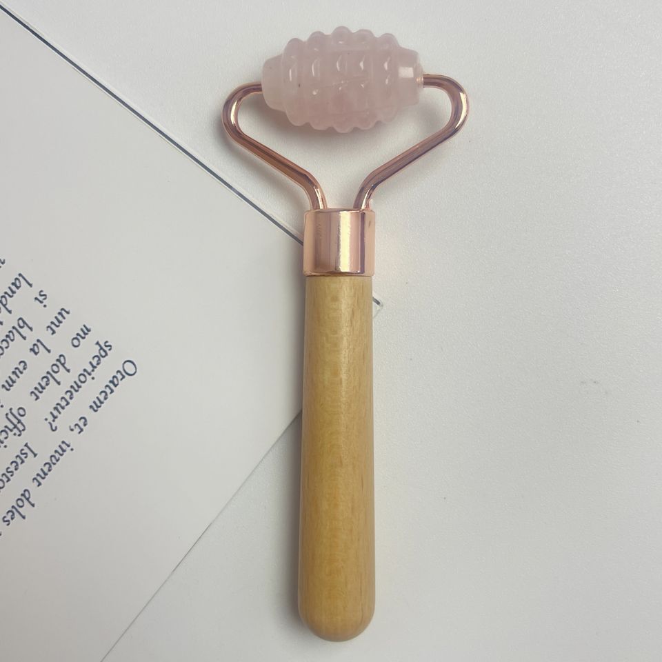 Product Name:wooden handle rose quartz prickly mini ice roller