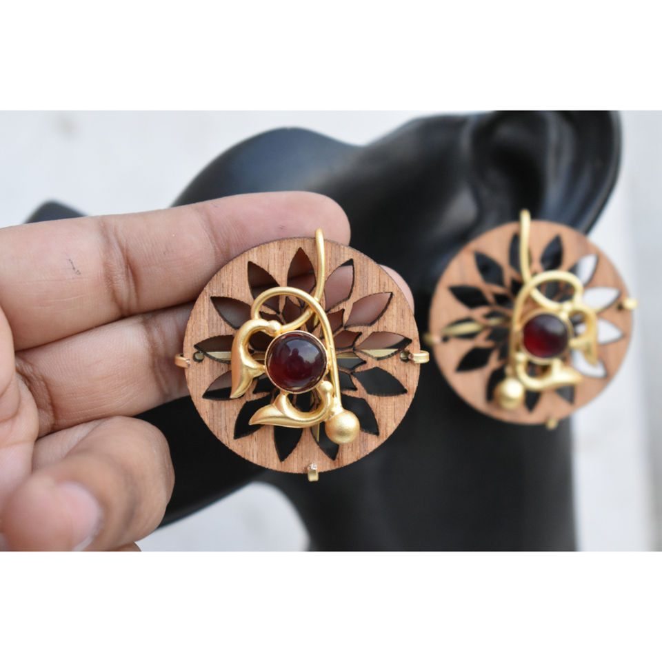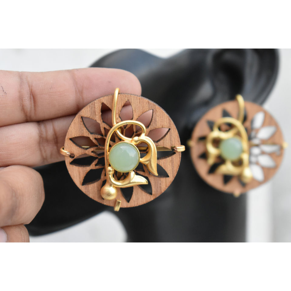 wooden jewellery treanding handmade goldplated brass wooden stone stud ethnic earings for girls and women