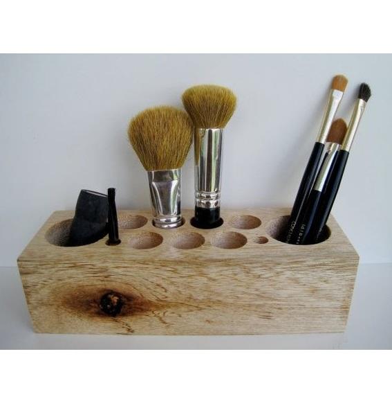 wooden makeup brush holder rustic organizer natural wood vanity stand eco friendly cosmetic storage block handmade brush holder